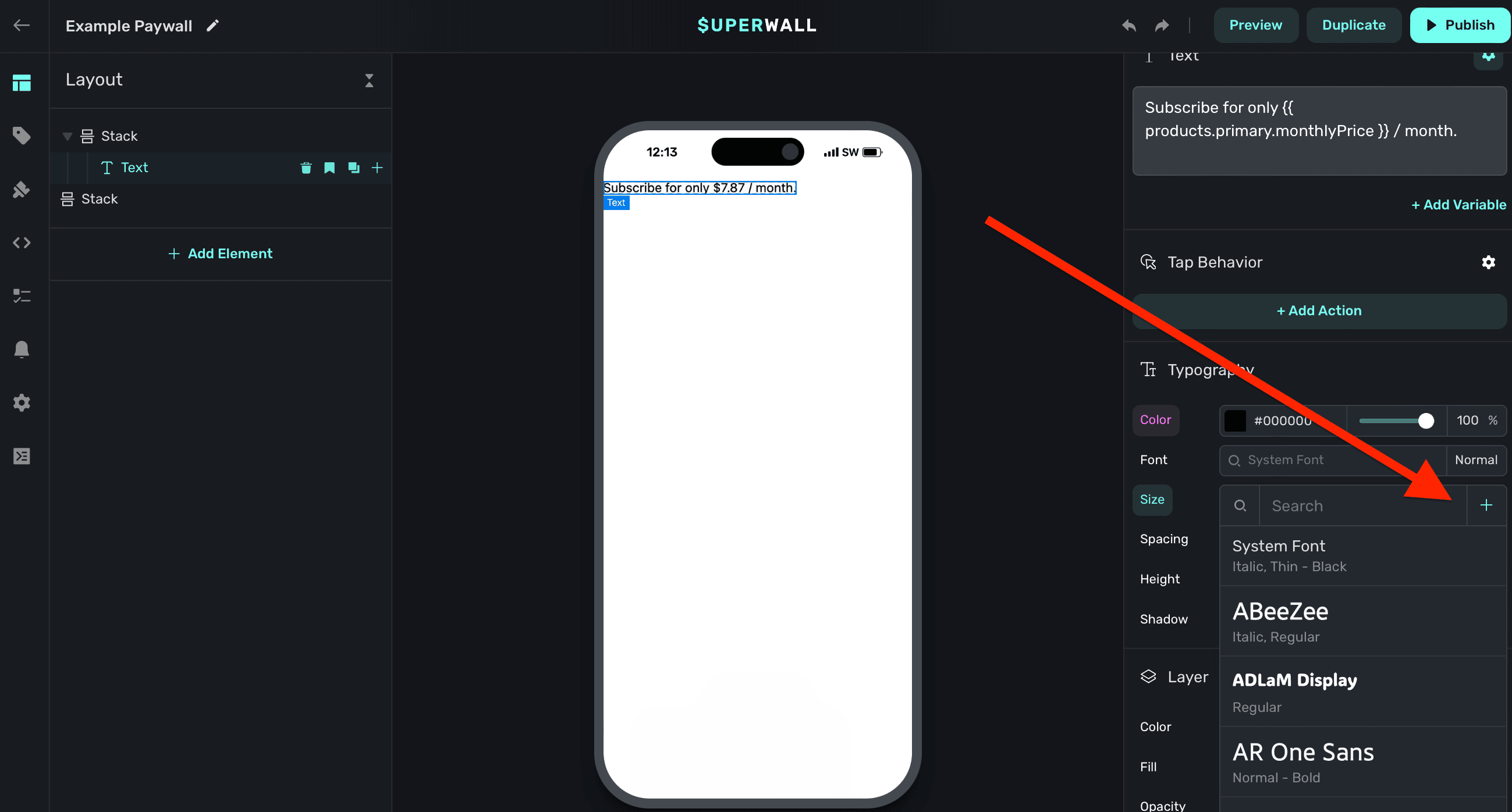 Superwall provides a font static variable. Use it to set a default font to use for any text component.