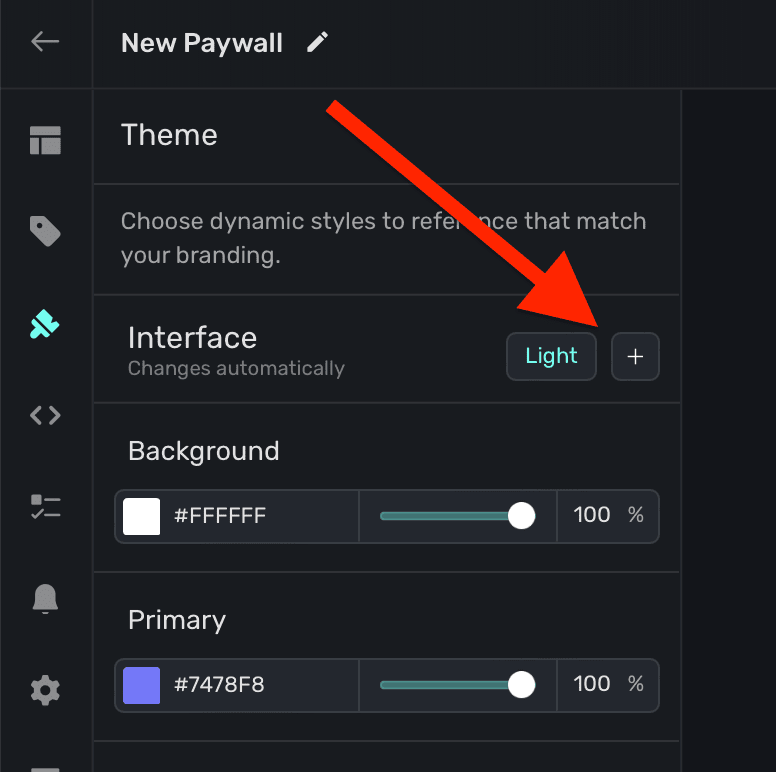 To configure a paywall's theme, click the Theme button in the sidebar: